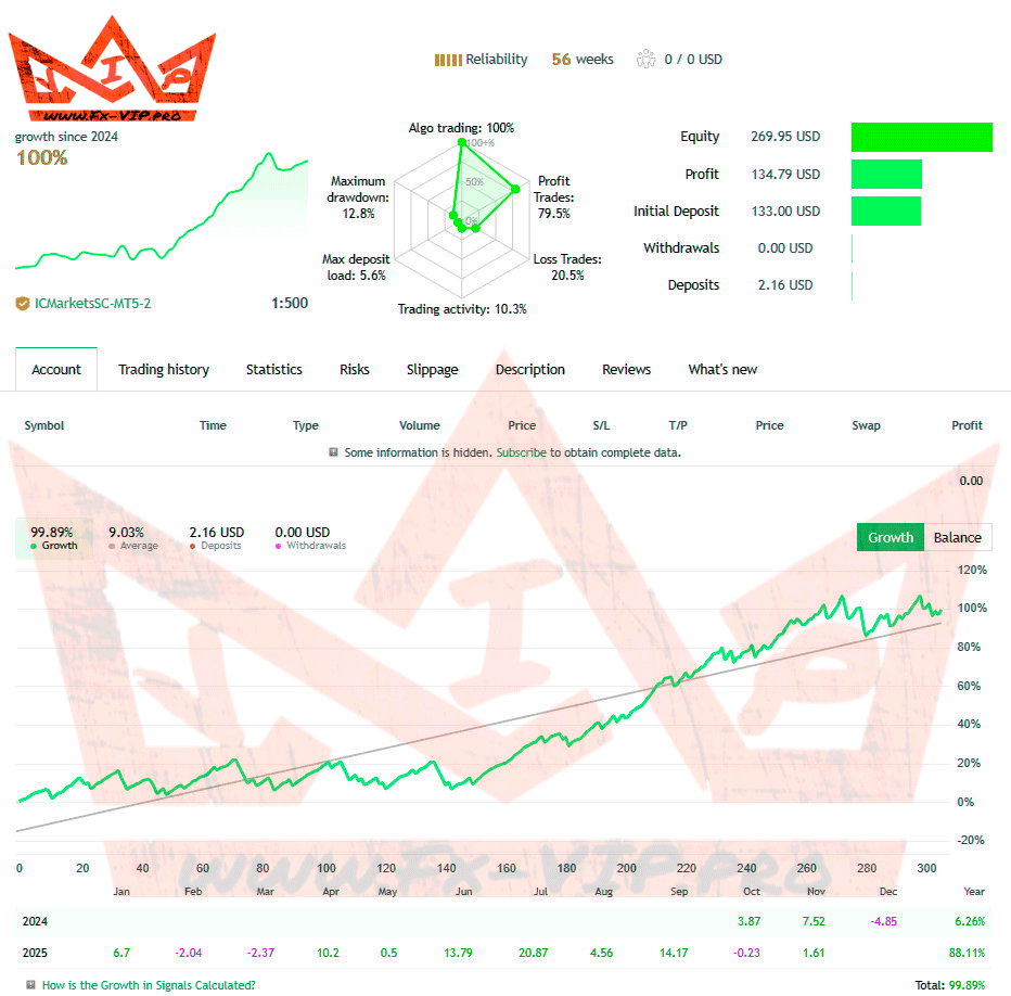 Backtesting was not conducted, as there is a live signal on the account from the author, detailed statistics below