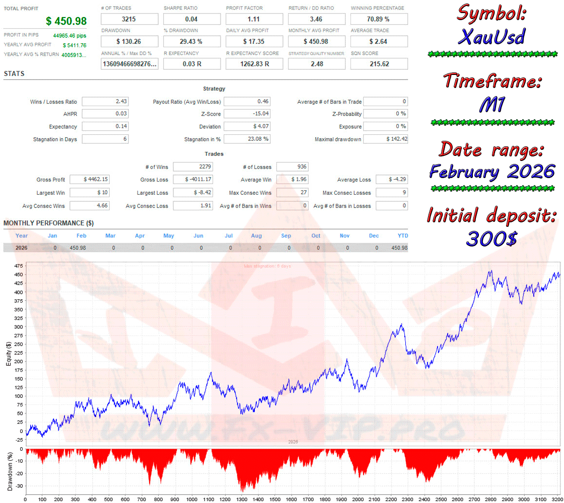 Backtesting was conducted with a minimum deposit of $300 with our settings, you can download the set file from our Telegram channel using the link https://t.me/FX_VIP/2618 , as the EA is very slow to complete backtest period lasted only one month. You can see the results below.